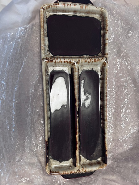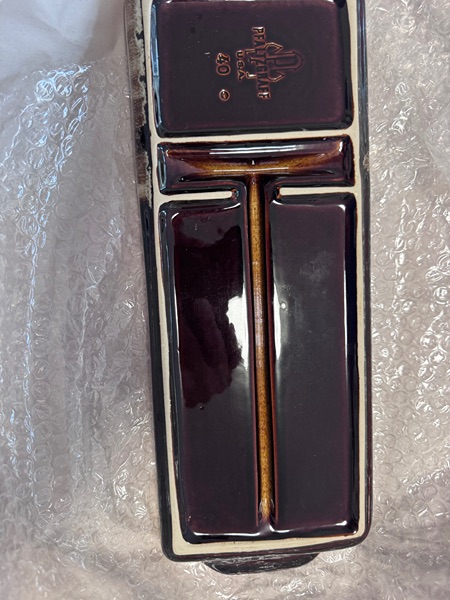 This is a vintage divided serving tray (also called a relish tray, cheese tray, or hors d’oeuvres tray) made by Pfaltzgraff Pottery, an American stoneware manufacturer founded in 1828. It’s from their “Gourmet Brown Drip” pattern, which features a tan/ivory stoneware body with a glossy dark brown drip glaze in the compartments—a mid-20th-century style popular in the 1960s–1970s for casual entertaining. The “#40” in the backstamp refers to the model or shape number, and the “USA” marking indicates it was produced at their York, Pennsylvania factory before much of their production shifted overseas.