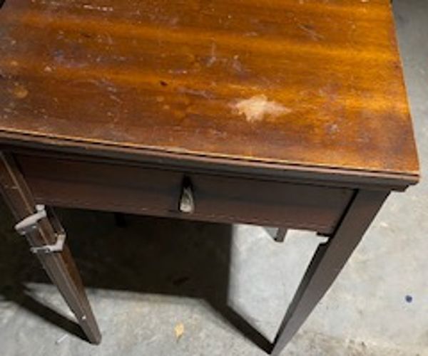 Vintage Empty Sewing Machine cabinet 22.75 x 17.5 top closed 46.5 x 17.5 open 31 tall 45