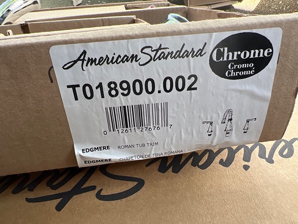 American Standard Tub Faucet and Towel Ring. Never used, still in original box.