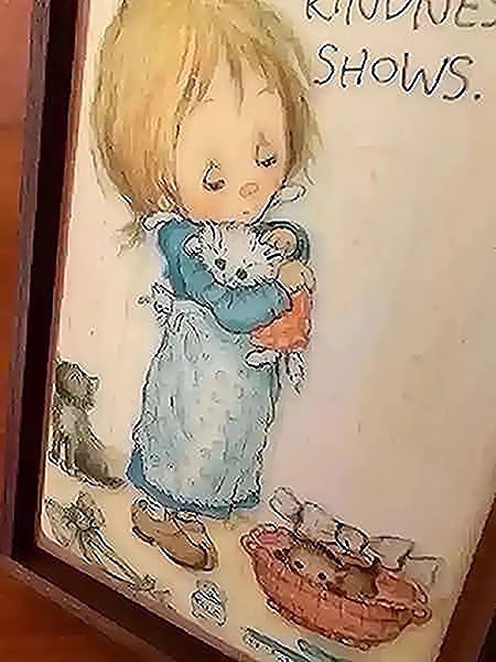 Vintage but like new! Genuine Walnut frame with collapsible stand and ceramic plaque “Love Grows Where Kindness Shows”