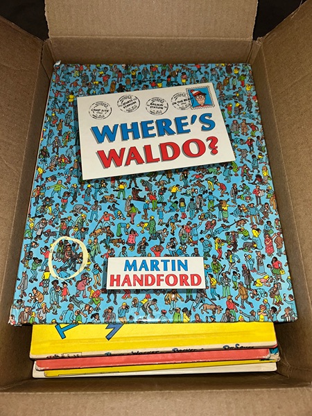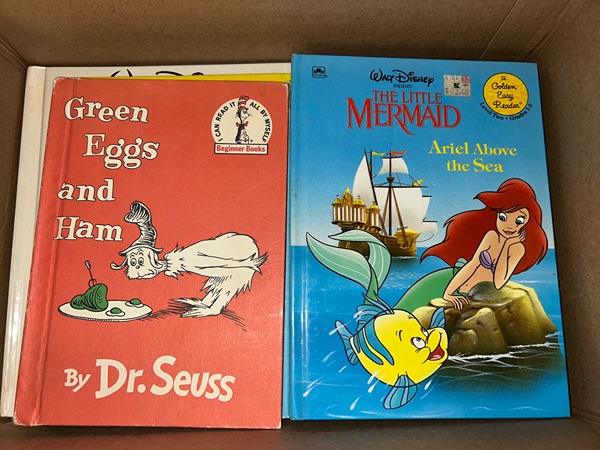 A box of children’s books, pre-k through early elementary age. Most of these are hardcover. Some are in good/very good condition, but overall, they are acceptable. This means some have wear, scribbles inside the covers, or discolored pages. However, all books have all pages and pages are intact (not torn, ripped, or falling out). Most, if not all, are vintage copies. $5