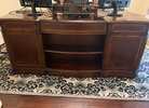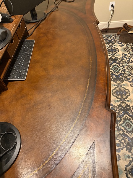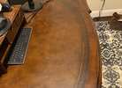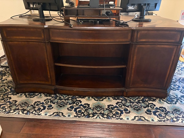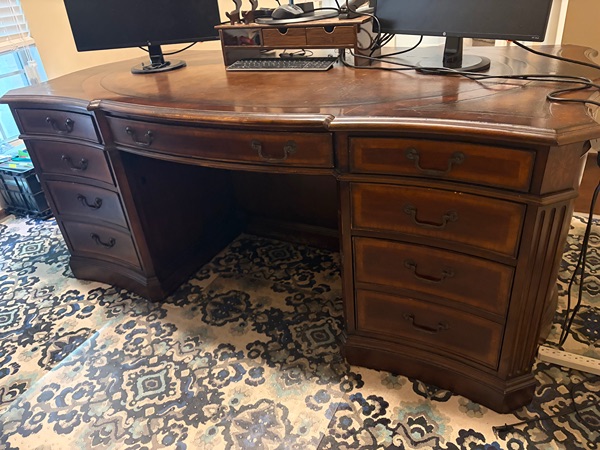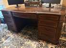 Hooker executive desk. Very heavy wood desk, need multiple people to move, 1 piece. Has a few dings on it. New it is almost $3k.