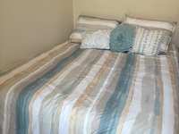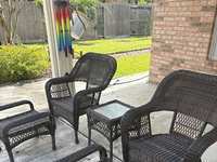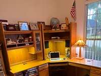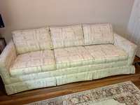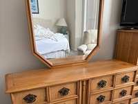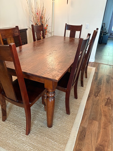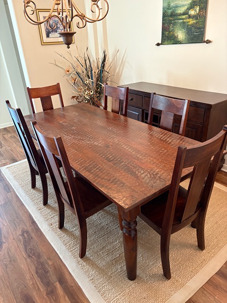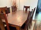 Solid wood large 82" dining room table with 6 chairs. Table seats 8.