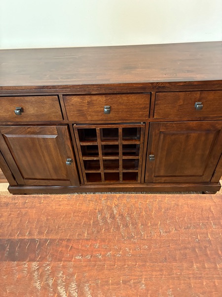 Solid wood sideboard 58" cabinet with optional wine rack.