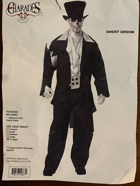 $15 Ghost Groom men’s sz XL, hat included, made an awesome Day of The Dead costume!