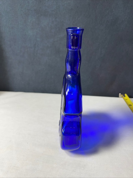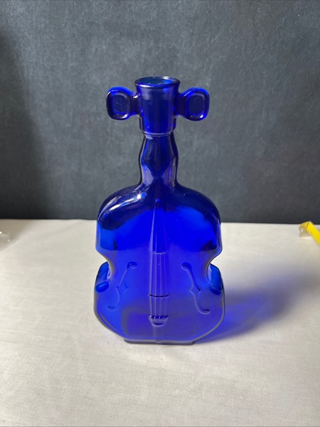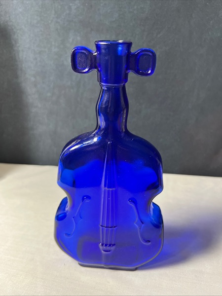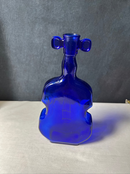 Beautiful Vintage Cobalt Blue Glass Violin Or Cello Shaped 8” Bottle. No chips breaks or cracks.