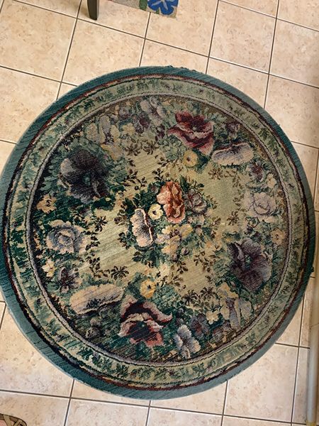 Round 5 foot diameter floral rug. Used but in good condition. Cash only please. Pick up or arrange to meet.