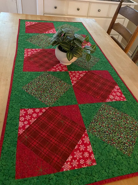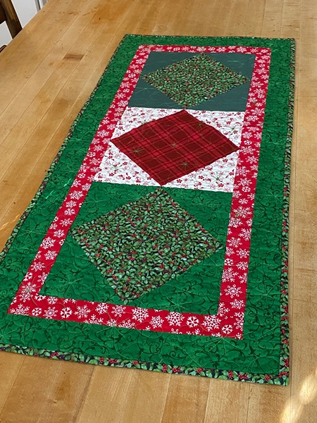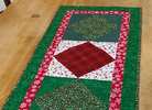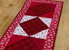 2 smaller rectangular table toppers. Red/white: 13 3/4 x 32 3/4. Snowflake red and green border: 16" x 34".