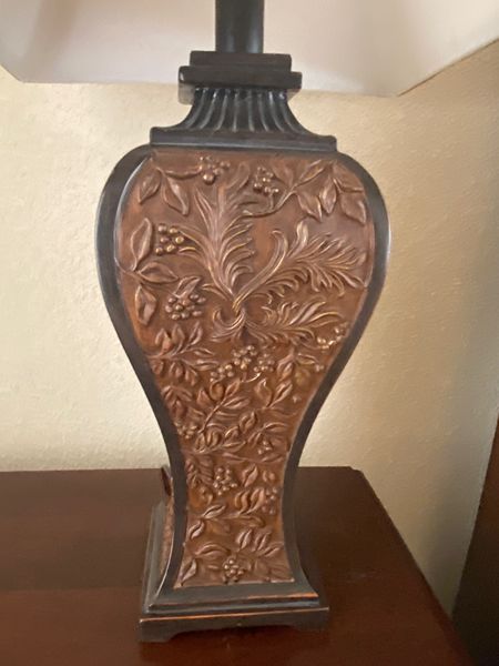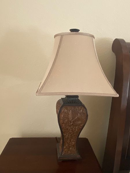 2 Lamp set for $80 ($40 each) - Westwood Collection - these traditional-style lamps have etched detail on the lamp base and black trim. 3-way turn sweitch for multiple light settings, harps, finials, rectangular shades and 80" cords.