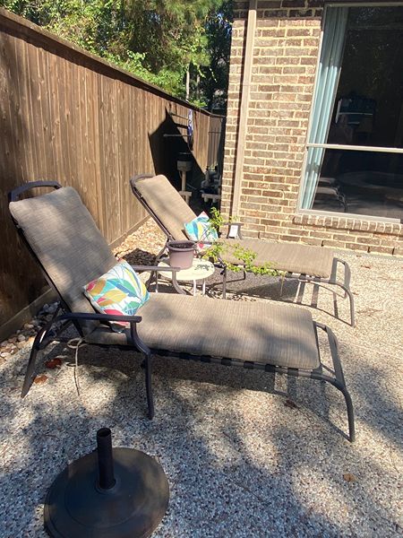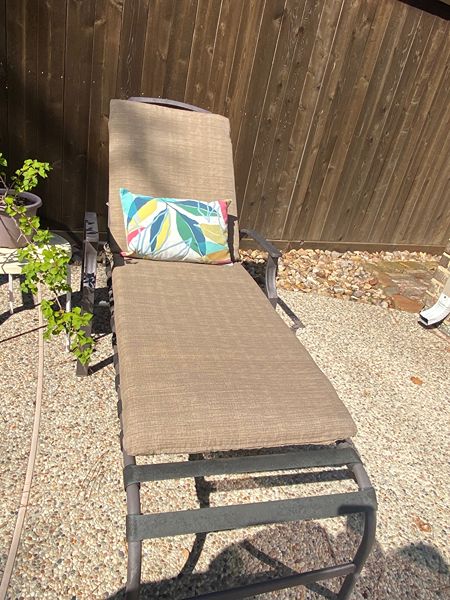 Modern outdoor loungers with 5 adjustable recline settings. Each cushion has 4 ties to secure the lounge base. Cushion inserts are removable for easy cleaning, with zipper closures