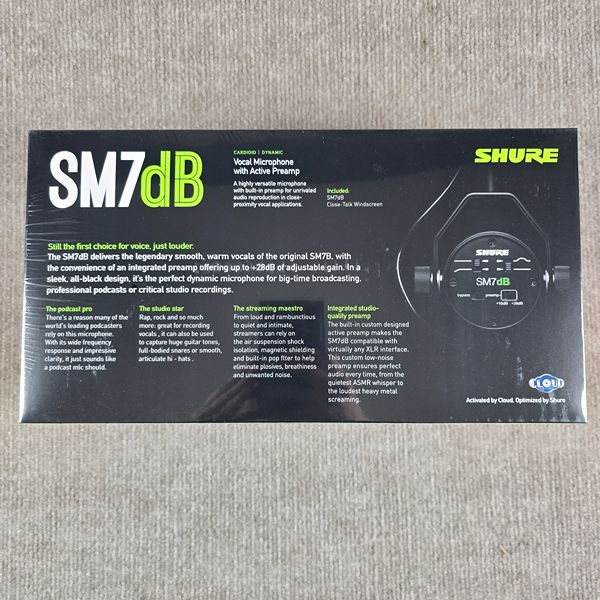 Shure SM7dB Dynamic Microphone Built In Preamp Streaming Podcast Recording. This microphone is still in the box. Located in The Woodlands 77381. Crossroad kuykendahl road and research forest drive. Delivery is available for a fee.
