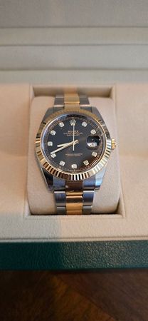 41mm, Black Diamond Dial, Yellow Gold Fluted Bezel, Two-Tone Stainless Steel & Yellow Gold Jubilee Bracelet, Sapphire Crystal, approximately 70 Hours of Power Reserve, 3235 Caliber Movement, Water Resistance 10ATM