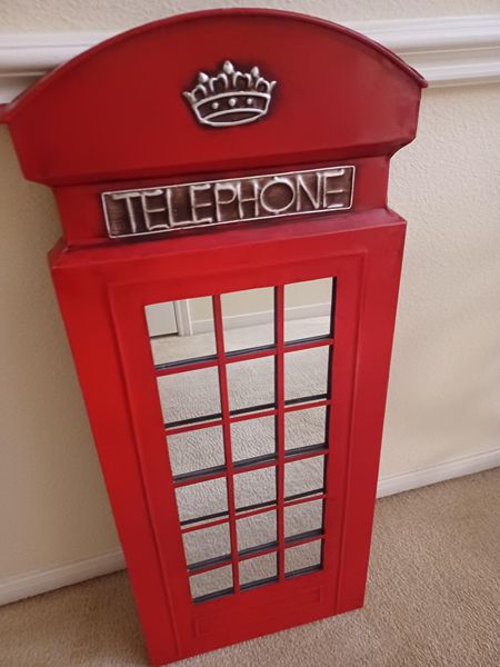 Vintage like Unique Red Telephone Booth Mirror 37x15