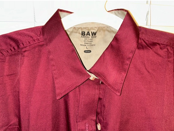 Ladies classic long sleeve button up, size large, relaxed fit with wrinkle-resistant fabric from BAW athletic wear. Shirt features double needle construction, contrasting inside yoke/collar lining, and wood style buttons. I believe this is new without tags because collar/cuffs are still stiff like it's never been washed or worn. Smoke free home. $10