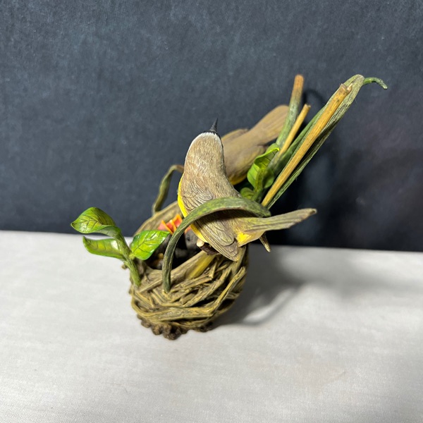 New Beginnings signed Bob Guge. Marked MBI on bottom. A beautifully intricate Sculpture of Baby Birds Feeding In The spring Nest. 4 3/4” tall x 4 1/4” wide x 2” deep. Made of high quality resin I believe. No chips breaks or cracks. Excellent condition. No box