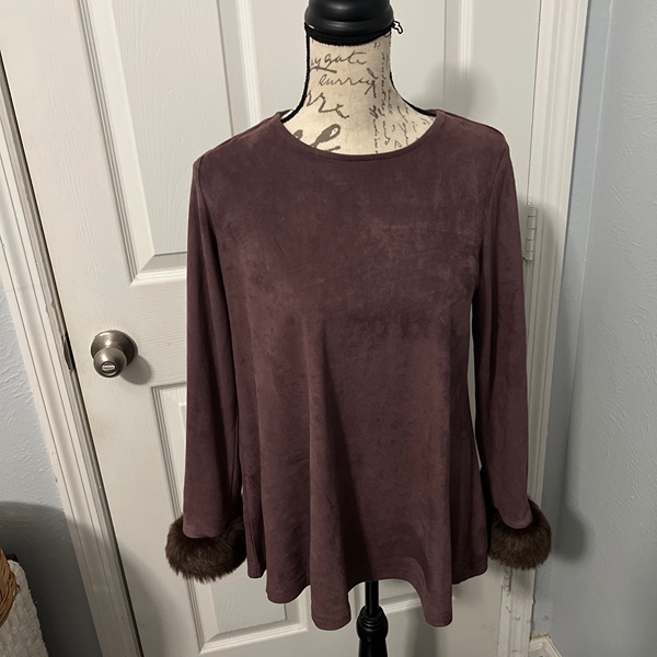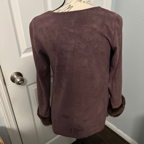 JOH size XS, Faux Suede Mauve LS Top With Faux Fur Cuffs.