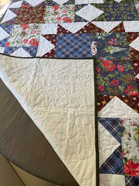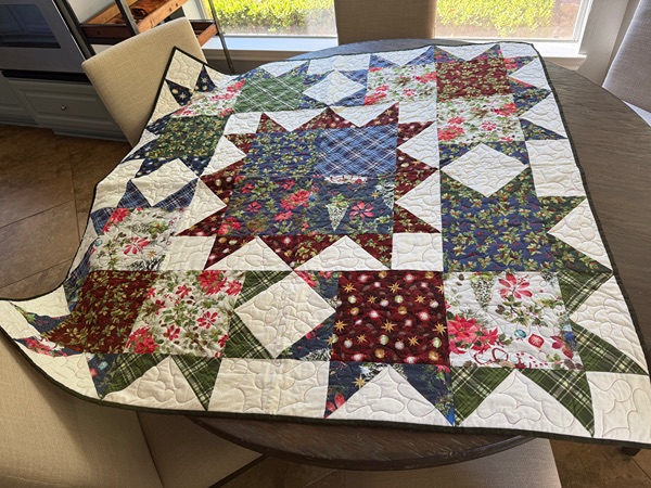 54" square Christmas Star Quilt. Throw size or big table topper 100% cotton. Machine washable