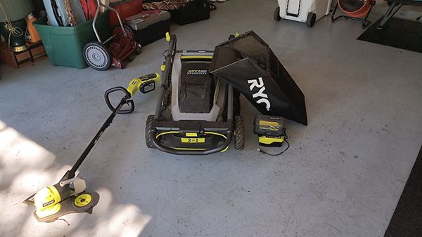 Selling a Ryobi Electric 40V HP Brushless lawn mower, as well as a Ryobi Electric Weed Wacker/Edger combo.