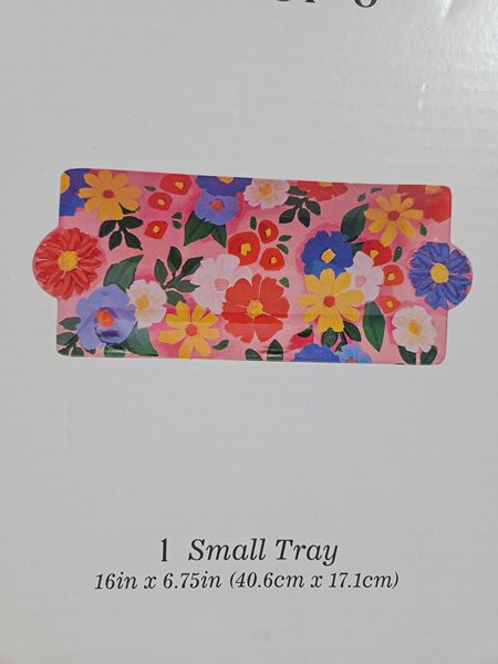 If you live bright floral serving pieces you'll love this set! Dishwasher safe Brand new in box. Looks like ceramic but its melamine. 1 x-large platter 1 recantgular platter 1 3-piece flowers container. Super cute! Retailed for $44.99 Selling for $10 Cash Located in The Woodlands off 242/1488 Front porch pick up