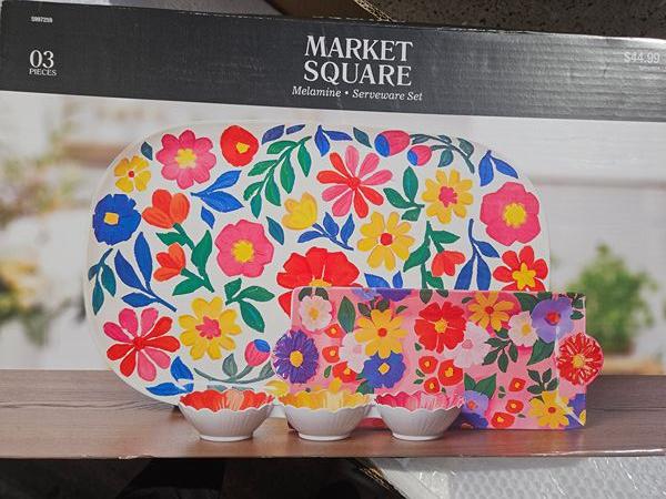 Melamine 3 Piece Floral Serving Set - Brand New