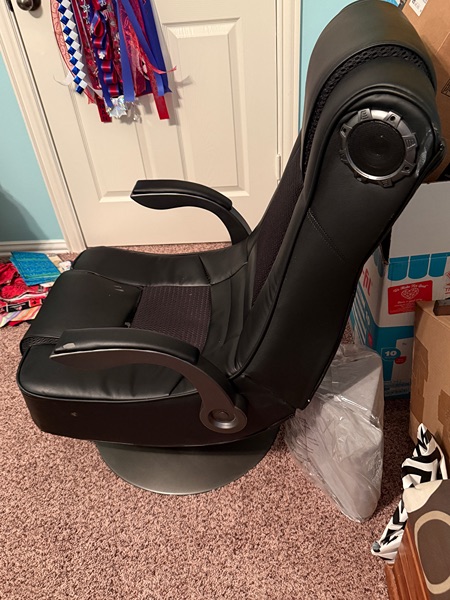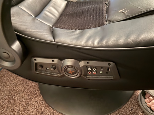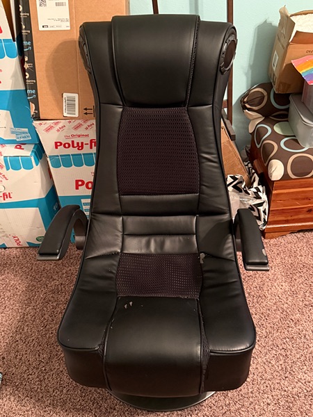 Used gaming chair. $250 new. Built in speakers and controls all working. Some wear spots on the seat.