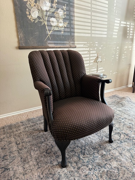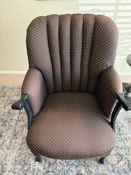 Adorable Antique Chair in great condition. Chocolate Brown with gold polka dots.