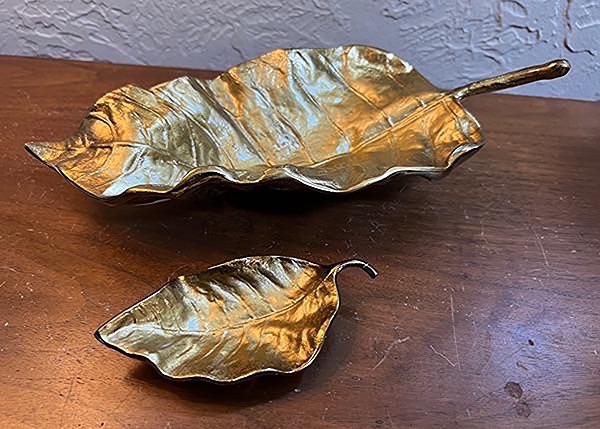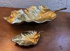 By Devi Designs, from Pottery Barn, early 2000’s, never used. Large leaf 12” x 5” x 3”, small leaf 5” x 2 1/2” x 1 1/2”. Display in any room or use to display jewelry or other trinkets. (Orig. $79)…$40 firm!