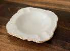 These small and dainty ashtrays were my grandmother’s. There are two available. White porcelain with gold painted rim. No chips or cracks. Measures about 3 3/4” square…$8 each or both for $15