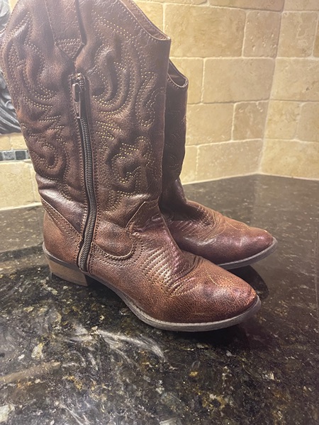 Cowgirl boots - brown....zipper sides - $5 obo ...size 4