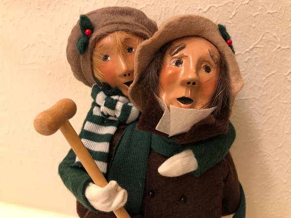 Victorian style figure featuring the ever popular Bob Cratchit and the lovable Tiny Tim. Byers Choice figures have become an iconic symbol of Christmas over the years. 13 inches tall. Very good condition. Asking $15.00.