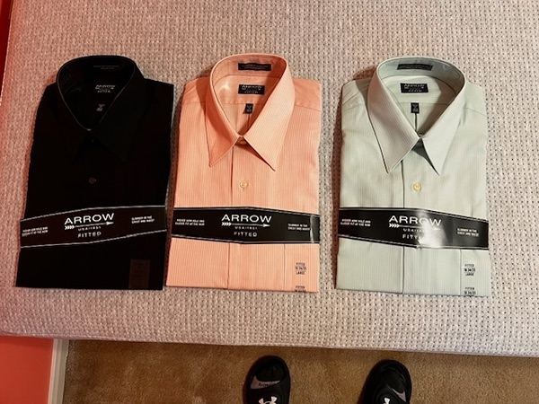 5 new mens dress shirts. 3 Arrow, one Van Heusen, and one Chaps.
