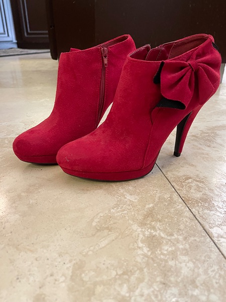 Red boot with bow...Hugh heel..worn twice ..$5 obo