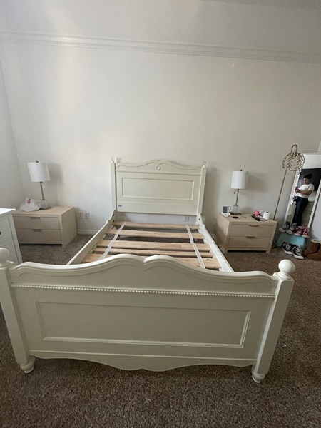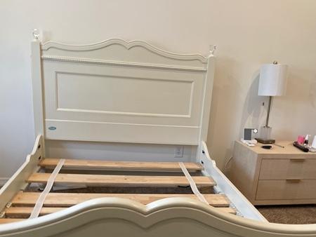 In excellent used condition — with very minimal wear (see pictures)Beautiful solid wood full-size bed frame by Café Kid.