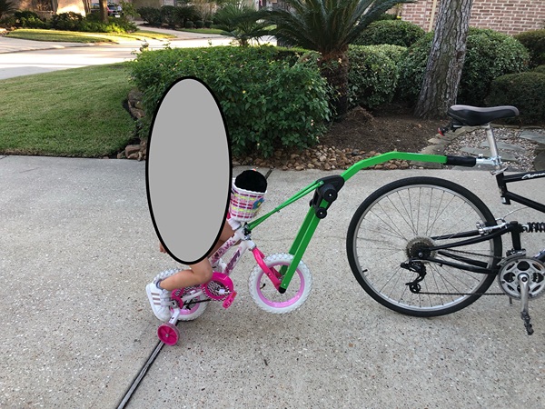 Peruzzo Trail Angel tow bar secures a child's bike to an adult bike and allows you to cycle together.