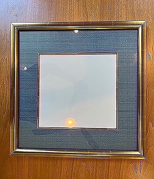 19 x 19 square with blue fabric matting and gold frame. The interior portion where the artwork will fit is 11” w, 10 1/2” l…$15 firm