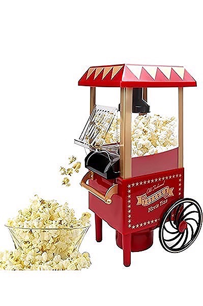 Enjoy everyone’s favorite movie theater treat in the comfort of your own home with the Popcorn Air Popper! This convenient countertop pop corner machine uses a swirling flow of hot air to pop kernels instead of oil, resulting in a healthier snack and fewer un-popped kernels. The mini popcorn machine prepares up to 6 cups of popcorn at a time, and it features a timeless vintage design that makes it a fun gift for birthdays, holidays, weddings, or housewarmings.