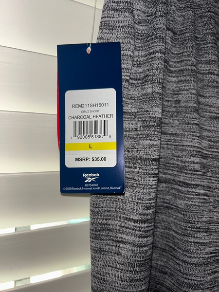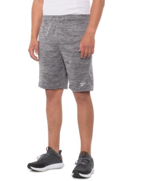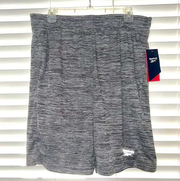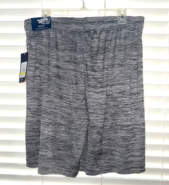 Men's size large, slim cut athletic shorts. Color is charcoal heather, fabric is moisture wicking, and inseam is 9 inches. New with tags from smoke free home. $10