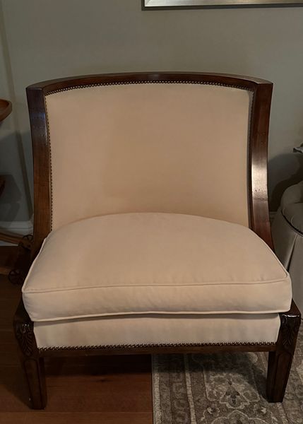 Lovely chair with velvet upholstery. Pale vanilla color.