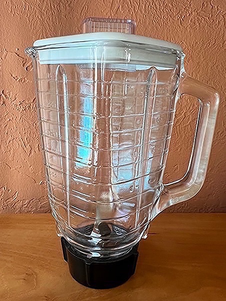 Replacement 5 cup glass blender jar with lid and base.  I believe this is Oster brand…$15 firm