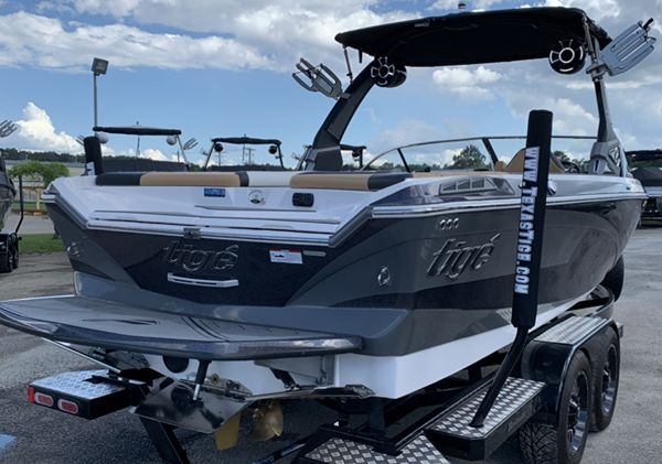 Key Features: Wetsounds Premium Audio System. Tige' ALPHA Power Folding Tower. Upgraded Steering Wheel Audio & Surf Controls. RGB Lighting - Tower Speakers, Side Panels, Under Tower Accent Lighting. Bimini Top with Storage for Surf Boards. Underwater LED Lighting. Boat and Swim Platform covers included. Boatmate Tandem Axle Trailer with 18" Wheels and Full Spare included with the boat. Much more - Surf system, touchscreen control panel, rear camera, luxury seating, premium gator skid decking, TAPS3 Surf System. This Z3 delivers the legendary Tige surf wave and wakeboard performance in a loaded, like-new package. Whether you're surfing, cruising, or just relaxing on the water, this boat does it all in style.