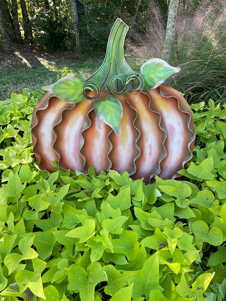 ROUND TOP OUTDOOR PUMPKIN DECORATION USED FOR FALL THROUGH THANKSGIVING.