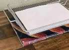 17” x 10 3/4” use for a coffee bar, office, tabletop, potted plants, classroom (shown with printer paper) etc. Like new condition…$15 firm