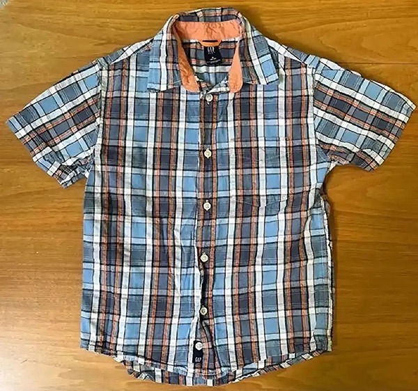 100% cotton, front pocket, shirt has a nice weight to it…$8