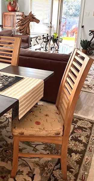 Eight lightly used dining room chairs with cushions