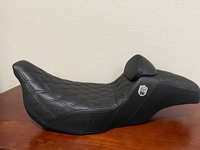 Used but in good condition with one small tear in the front- very minimal. Otherwise clean, comfortable, and gives your Street Bob that classic custom look. The model number is LY-020DM and can be used to see compatible bike models.