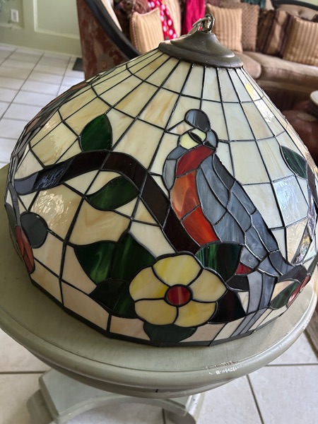 Vintage Tiffany style stain glass lamp in perfect condition . No crack. large lamp . 19 inches wide.