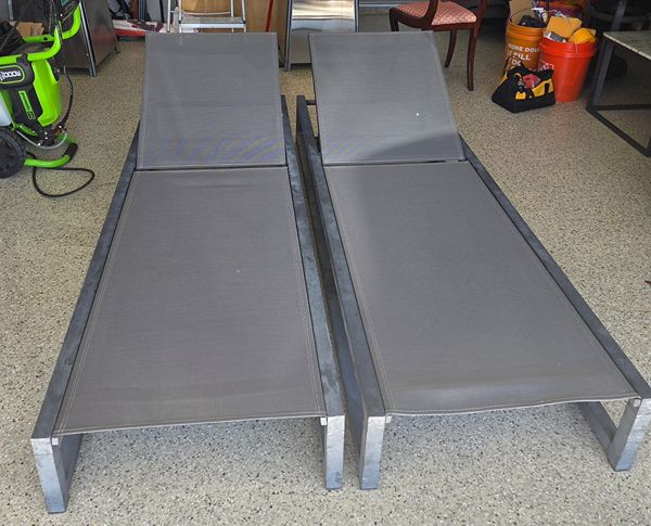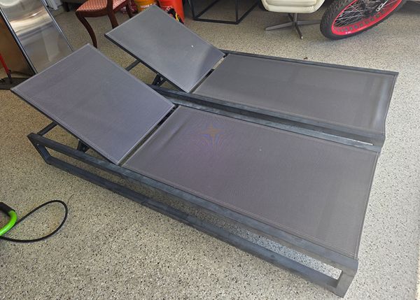 Two dark gray adjustable sun loungers. In good condition approx 18 months old. Buyer collects. Cash/Zelle/Venmo