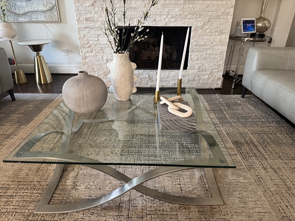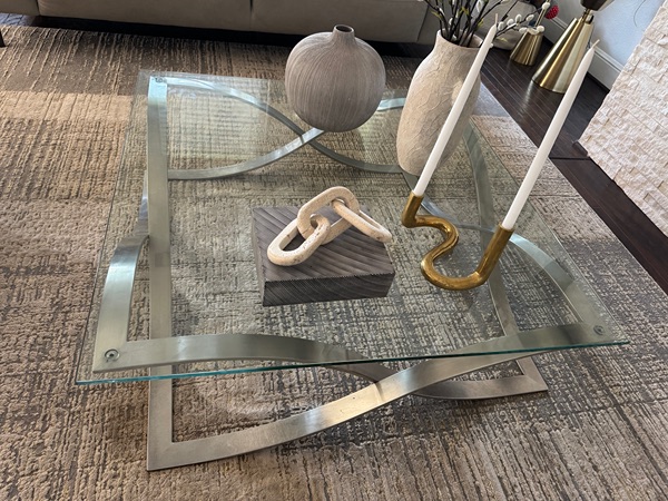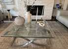 Beautiful glass coffee table from high fashion home. Good used condition 41"x41". 14" height