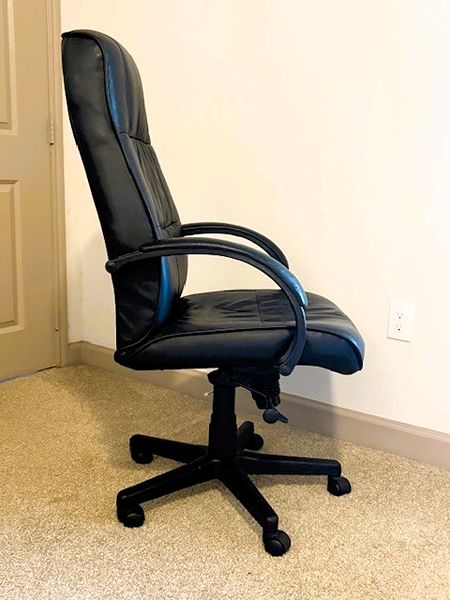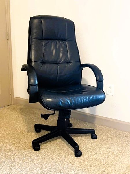 Chair is in very good condition with a tall back, armrests and a comfortable seat.  Adjustable height, rotating base and wheels.