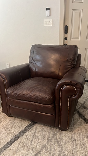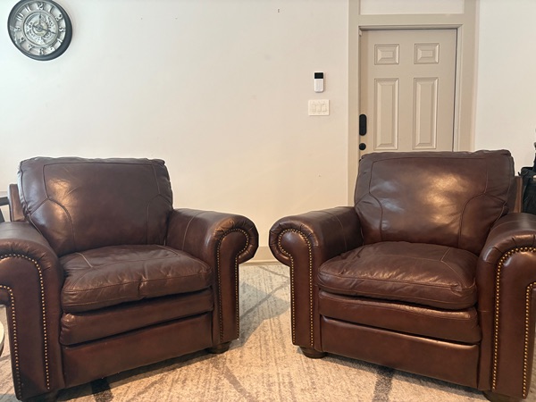 Selling two oversized genuine leather armchairs in excellent shape.